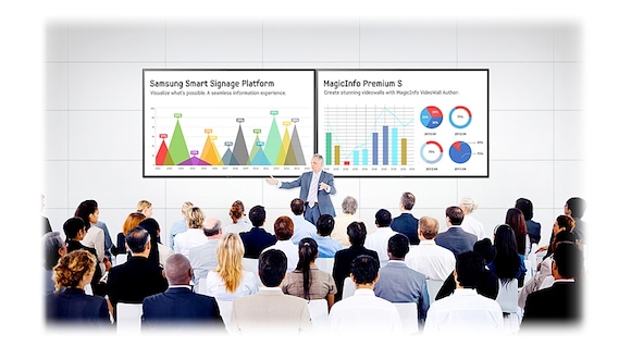 Samsung Smart Signage Platform (SSSP) در نمایشگرهای سامسونگ تعبیه شده است و قدرت یک CPU دو هسته ای و ترکیبی از پخش کننده رسانه و راه حل نمایشگر یکپارچه، پخش کننده MagicInfo™ Premium S را فراهم می کند. این راه حل نیاز به ماژول های رایانه شخصی اضافی را از بین می برد و با ارائه تمام عملکردهای لازم برای عملکرد صفحه نمایش در یک نمایشگر، نصب و نگهداری را آسان تر می کند. با استفاده از پخشکننده MagicInfo Premium S، میتوانید بدون زحمت محتوا را ایجاد، زمانبندی و استقرار دهید. با استفاده از CPU دو هستهای و 8 گیگابایت فضای ذخیرهسازی، و یک پردازنده ویدیویی با کارایی بالا که روی یک تراشه یکپارچه شده است، میتوان چندین نوع محتوا را بهطور همزمان و پیوسته پخش کرد.