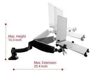 - طول بازو: طول بازو تا 645 میلیمتر میرسد که امکان تنظیم موقعیت لپ تاپ در شرایط مختلف را فراهم میکند.